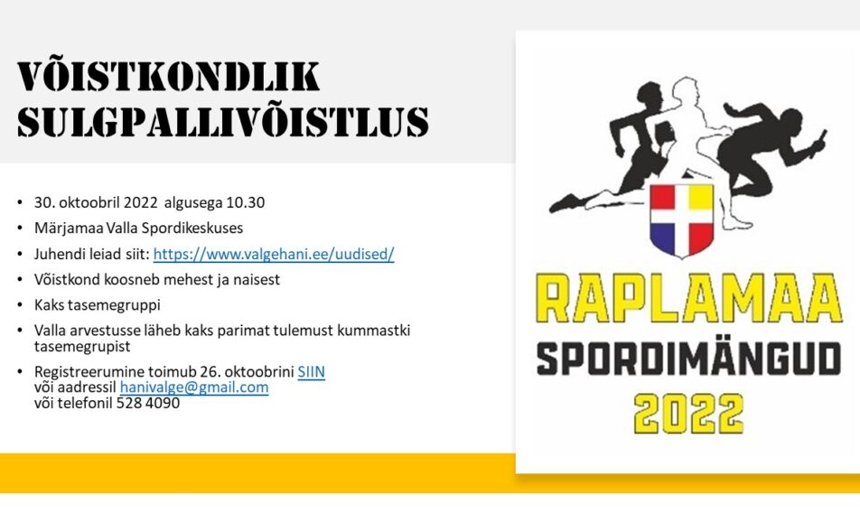 Juhend Tulemused – meespaar meistriliigaTulemused – naispaar meistriliigaTulemused – segapaar meistriliigaTulemused – meespaar rahvaliigaTulemused – naispaar rahvaliigaTulemused – segapaar rahvaliiga